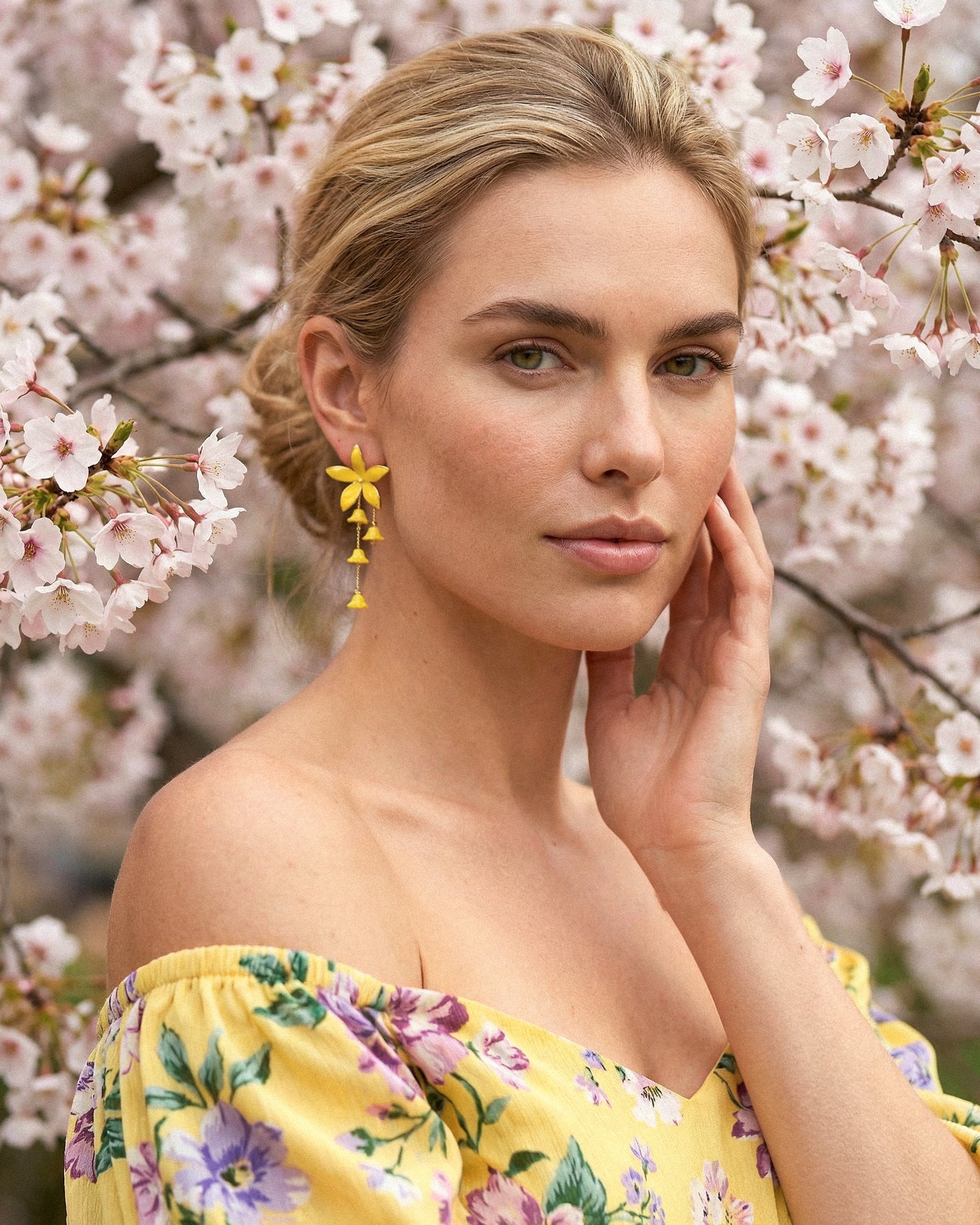 Pendientes con cierre en forma de lirio amarillo que marca el tono de este diseño llamativo y elegante.